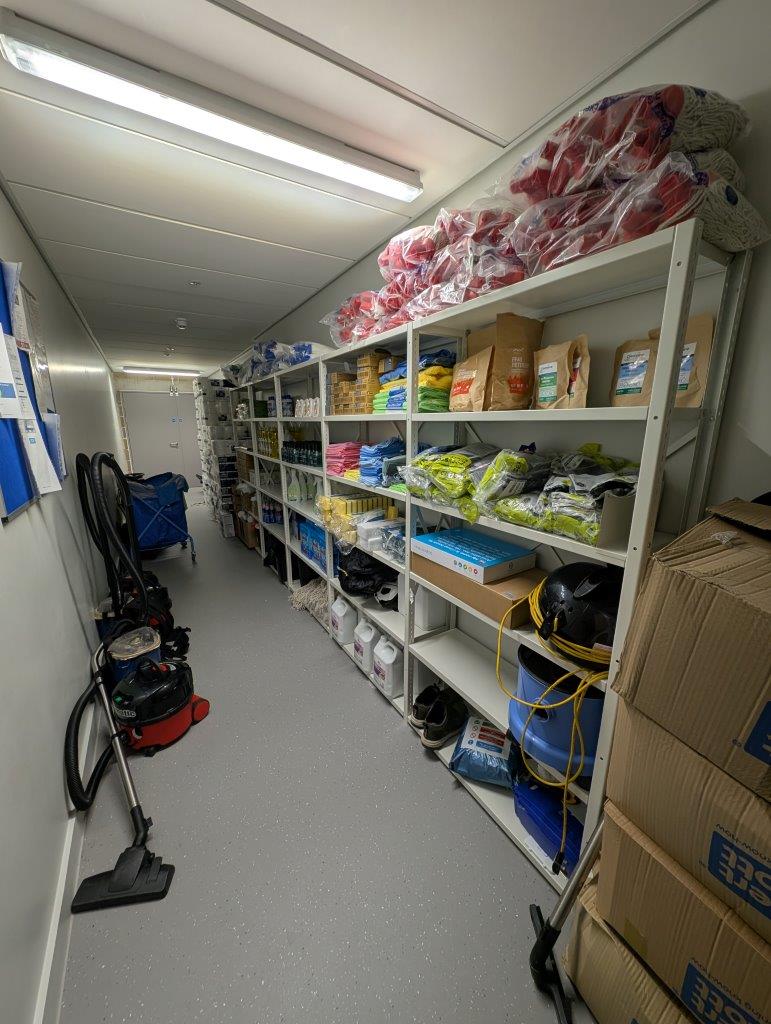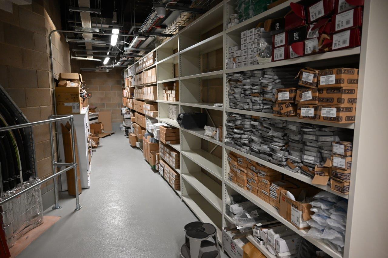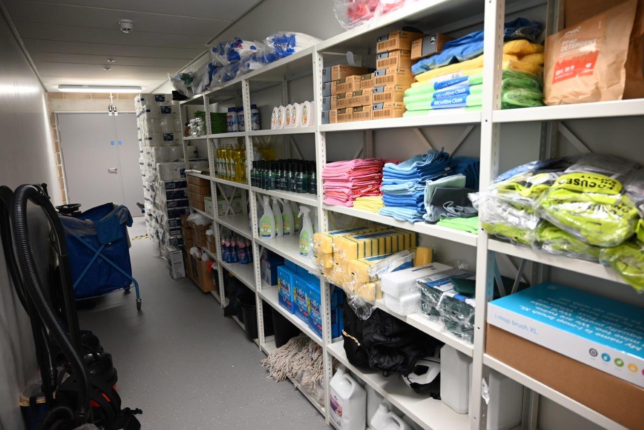 Seemingly behind every door there is a Rackline shelving system holding items. From cleaning cupboards full of materials to keep the vast building spotless, to stationary and I.T equipment, Rackline systems keep these items safe and secure.