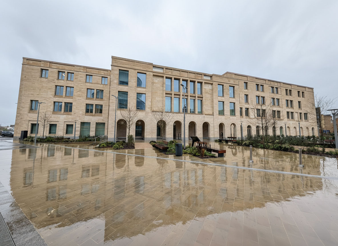 Completed in 2025, the centre houses a concert hall, lecture and exhibition spaces, rehearsal rooms, libraries, and academic faculties including English, History, Music, Philosophy, and the new Institute for Ethics in AI.