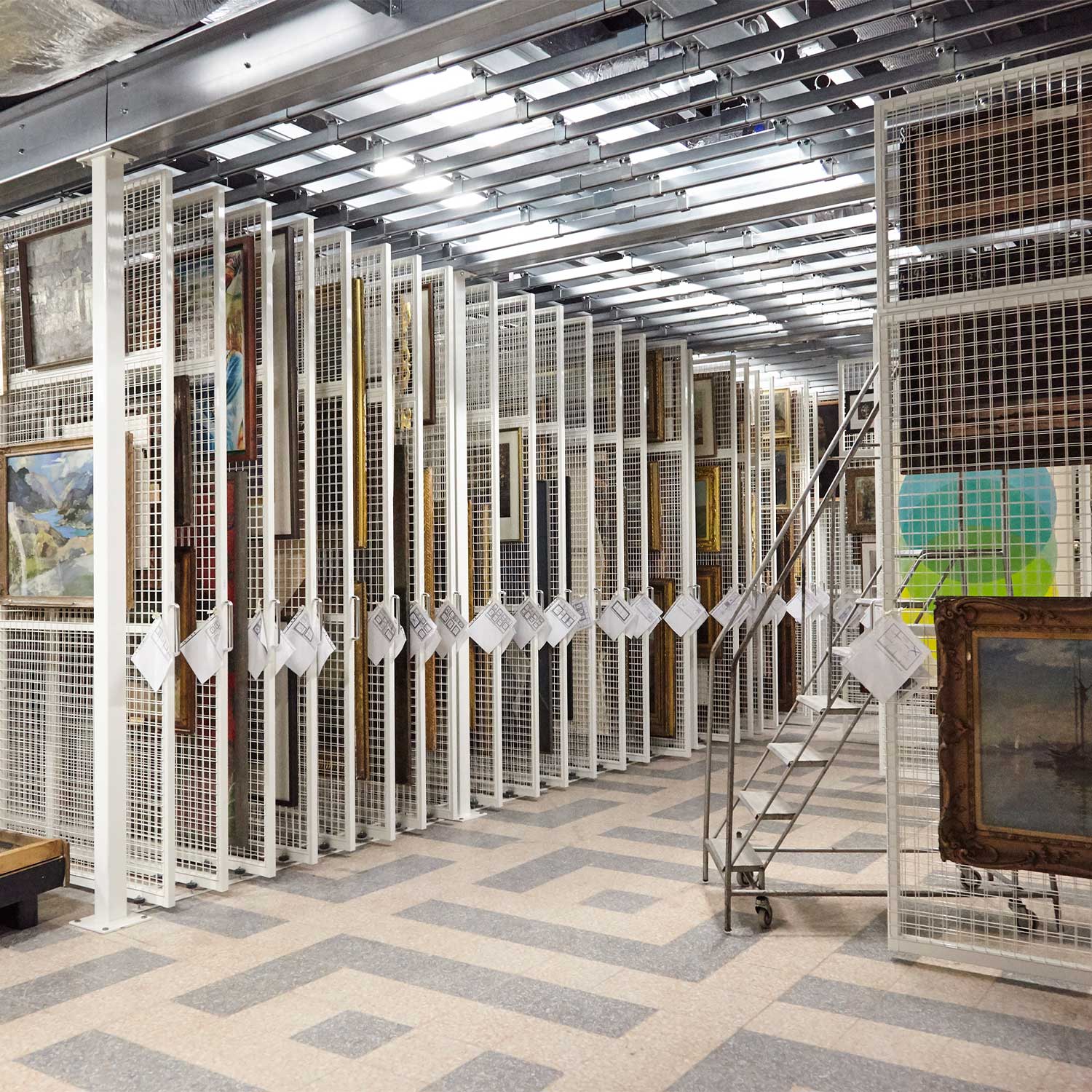 - Lighting: UV light is one of the quickest ways to degrade art. Ensure your storage area uses UV-filtered lighting and that your racking is positioned to avoid direct sunlight when drawers or racks are opened.