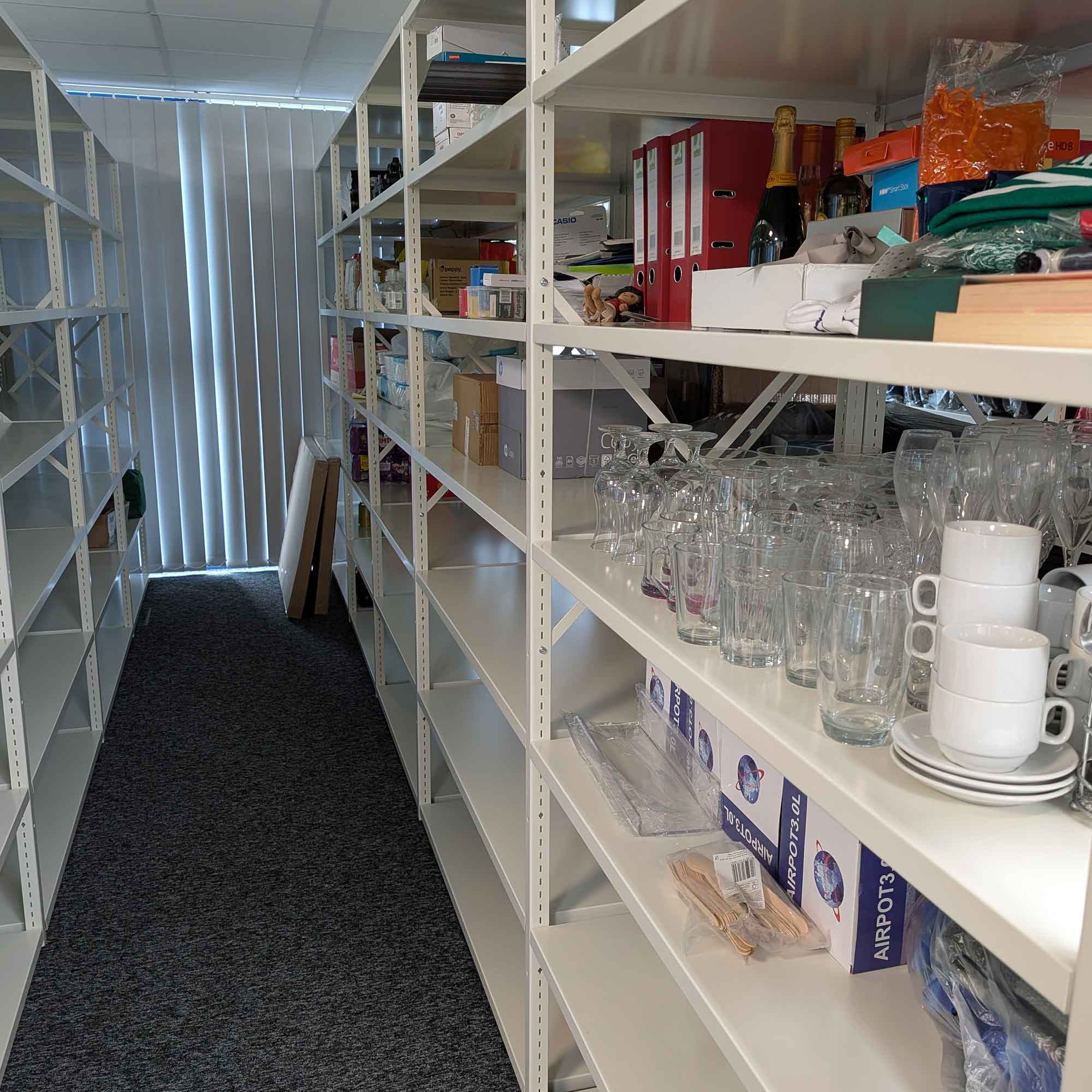 The open, well-structured layout keeps the space tidy and efficient, and access is restricted to the teams who use it, making it quick and simple to store or retrieve items whenever needed.